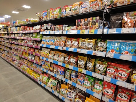 お醤油・味噌などの調味料やインスタントラーメンなどの加工食品を販売。主に生もの以外の食材を扱います。