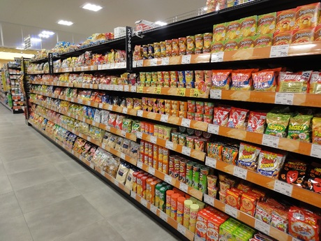 お醤油・味噌などの調味料やインスタントラーメンなどの加工食品を販売。主に生もの以外の食材を扱います。